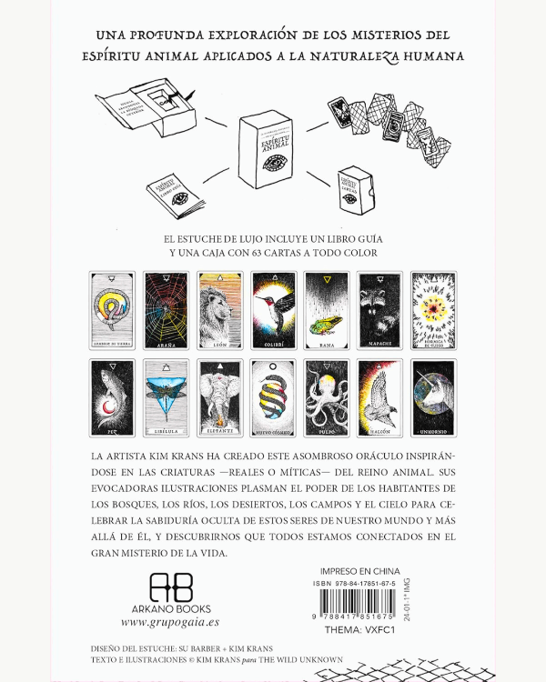 La artista Kim Krans ha creado este asombroso oráculo inspirándose en las criaturas —reales o míticas— del reino animal. Sus evocadoras ilustraciones plasman el poder de los habitantes de los bosques, los ríos, los desiertos, los campos y el cielo para celebrar la sabiduría oculta de estos seres de nuestro y más allá de él, y descubrirnos que todos estamos conectados en el gran misterio de la vida.
