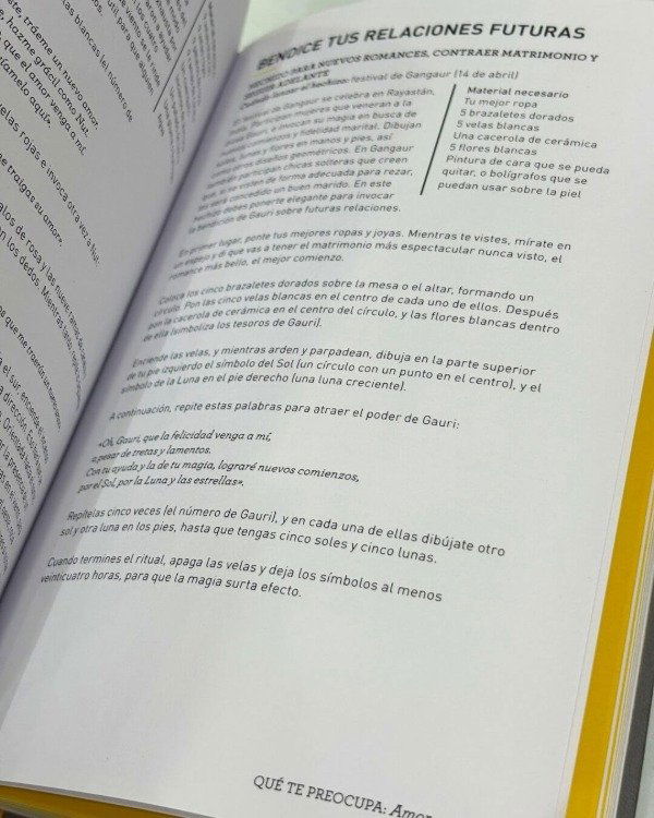 La magia se encuentra en todas y cada una de las partes que componen el mundo vivo, solo necesitas saber cómo acceder a ella. El libro de hechizos de las brujas es una potente colección de hechizos, rituales y encantamientos que puedes emplear para conectar con tu intuición y con el poder del mundo natural. Este libro revela cómo, simplemente ejecutando hechizos que se alían con los ciclos de la naturaleza y el universo, tú también puedes comenzar a expresar tus sueños y moldear tu destino. Se han estructurado por temas: hechizos para conseguir prosperidad, hechizos relacionados con el cuerpo, para lograr belleza y sexo, o encantamientos para mejorar la creatividad y el carisma.