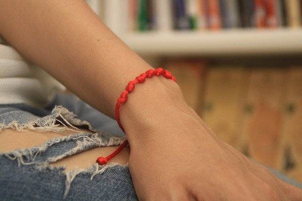 Pulsera Siete nudos de hilo rojo