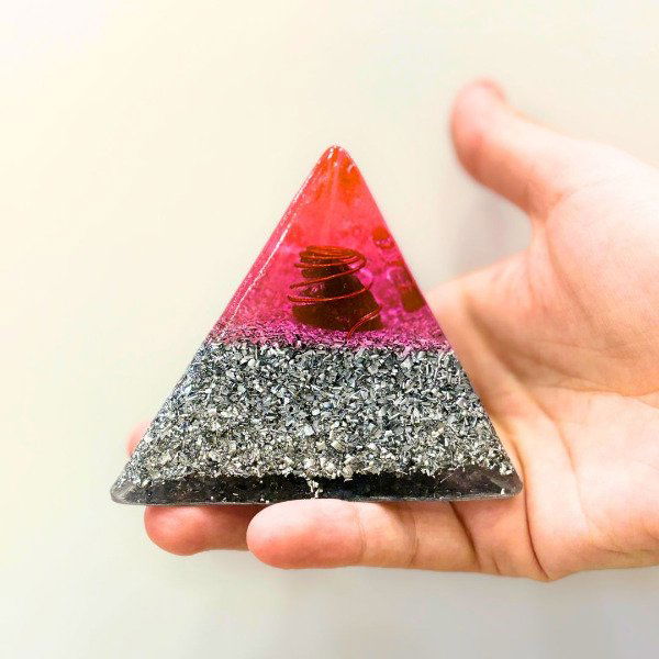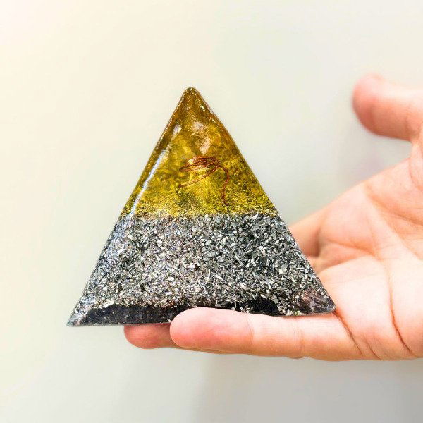El Orgón Piramidal Energético es una pieza creada para armonizar y equilibrar la energía de personas y espacios. Está elaborado a partir de la combinación de resina, metales y cristales naturales, una estructura característica de los orgones auténticos, reconocida por su capacidad de transmutar la energía densa en energía armonizada.