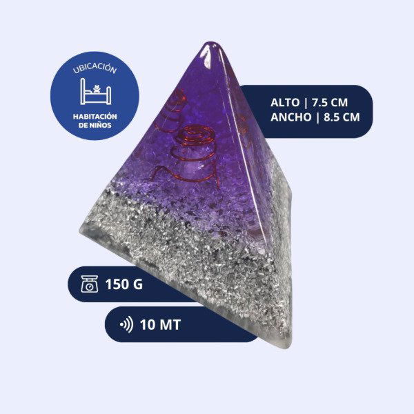 Su forma piramidal potencia la circulación de la energía, ayudando a limpiar vibraciones densas, proteger de interferencias electromagnéticas y elevar la frecuencia vibratoria del ambiente. Es ideal para colocar en el hogar, espacios de trabajo, consultorios holísticos o zonas de meditación.