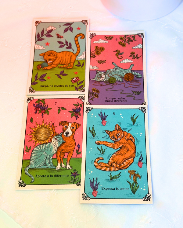 📖 Cada carta viene con una guía completa para interpretar los mensajes, ¡pero los gatitos siempre te invitan a usar tu intuición! 🐾