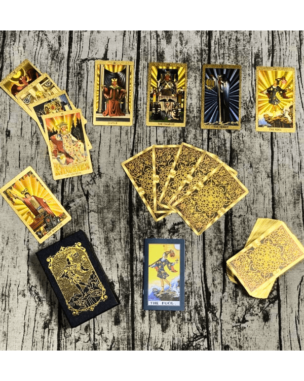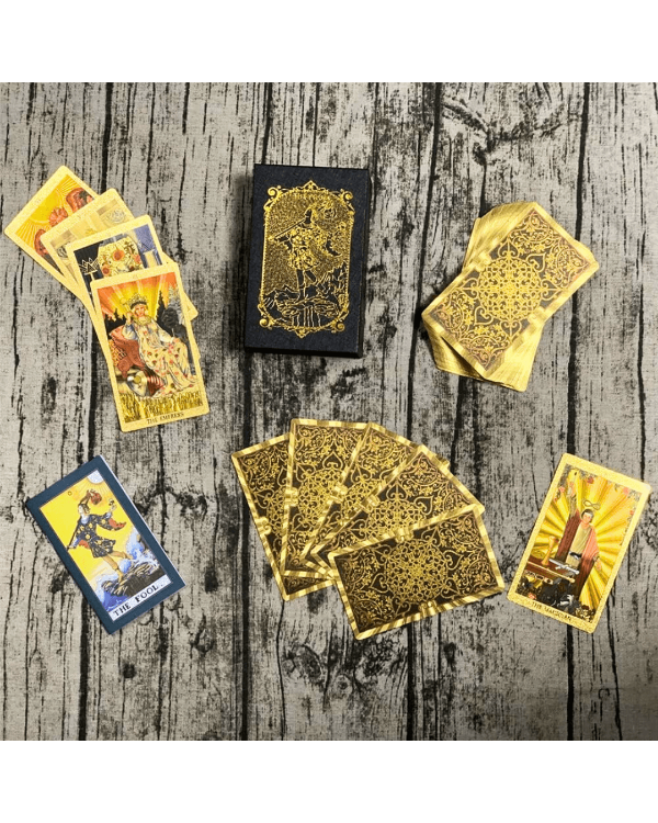 ¿Querés un mazo de tarot que no solo te hable, sino que brille con vos? 💁♀️ El Gold Foil Tarot tiene ilustraciones clásicas estilo Rider Waite, ¡pero con detalles dorados que lo hacen un fuego! 🔥 Cada carta es una obra de arte que eleva tus tiradas y conecta con tu intuición al toque.