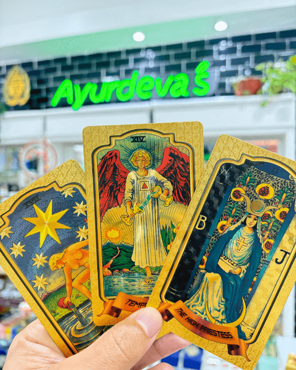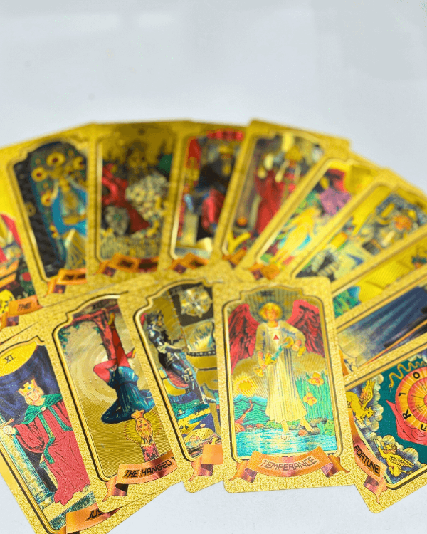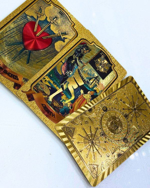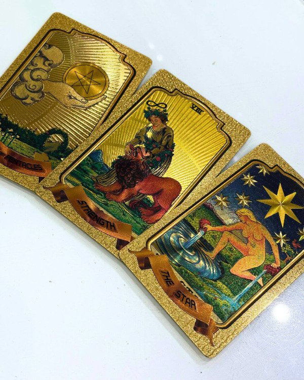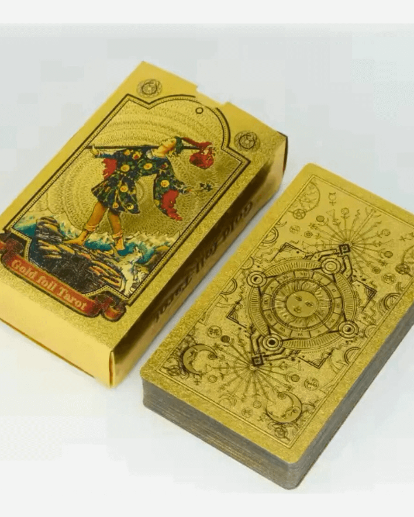 ¿Querés un mazo de tarot que no solo te hable, sino que brille con vos? 💁♀️ El Gold Foil Tarot tiene ilustraciones clásicas estilo Rider Waite, ¡pero con detalles dorados que lo hacen un fuego! 🔥 Cada carta es una obra de arte que eleva tus tiradas y conecta con tu intuición al toque.