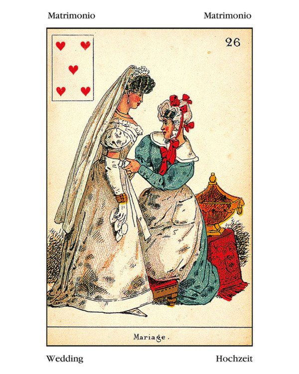Una de las barajas más utilizadas en siglos pasados por adivinos de todo el mundo, ha sobrevivido hasta nuestros días prácticamente intacta. La simplicidad y la poesía de las imágenes y la frase impresa en las cartas las convierten en unas de las más intuitivas y, a la vez, evocadoras que existen hoy en día.