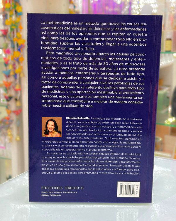 La metamedicina es un método que busca las causas psicosomáticas del malestar, las dolencias y las enfermedades, así como las de los episodios que se repiten en nuestra vida, para después ayudar a comprender todo ello en profundidad, superar las vicisitudes y llegar a una auténtica trasformación mental y física. Este magnífico diccionario abarca las causas psicosomáticas de todo tipo de dolencias, malestares y enfermedades, y es el fruto de más de 30 años de minuciosas investigaciones por parte de su autora. La obra pretende ayudar a médicos, enfermeras y terapeutas de todo tipo, así como a aquellas personas que se dedican a asistir y a tratar de comprender a cualquier nivel las patologías de sus pacientes. Además de un referente decisivo para todo tipo de medicinas y una aportación inestimable al crecimiento personal, este diccionario es también una herramienta extraordinaria que contribuirá a mejorar de manera considerable nuestra calidad de vida.