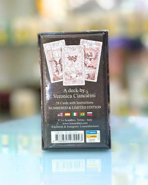 Esta baraja narra la historia de Vespertiliu, una mujer murciélago que decide embarcarse en una extraordinaria aventura acompañada por Macigian, la pequeña bruja que la guiará en su viaje a través de los Arcanos. Este singular Tarot narrativo es la última incorporación a la línea Horizons de Lo Scarabeo: luce un original estilo de contorno en blanco y negro y ofrece una experiencia de lectura completa. Disponible en una edición limitada de tan solo 4000 ejemplares.