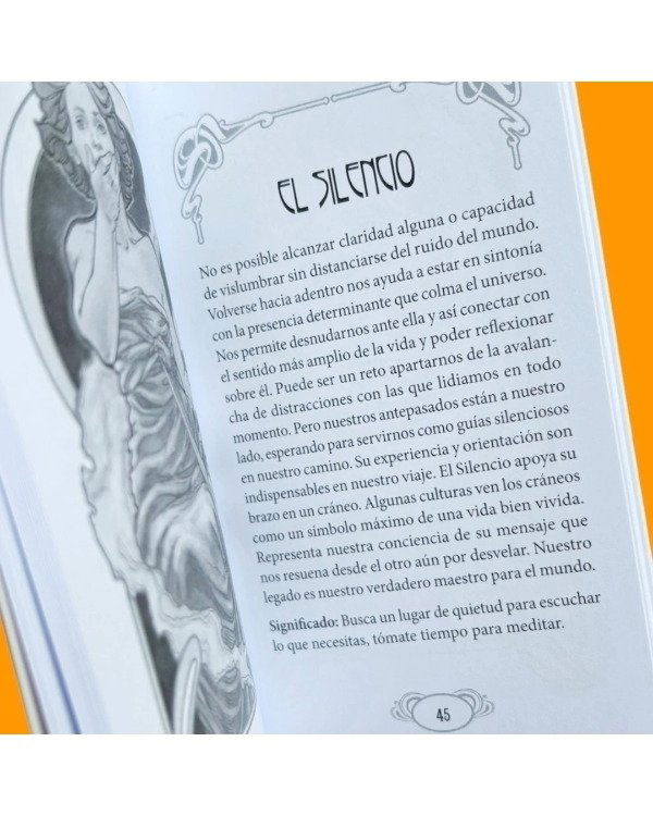 Inspirado en el movimiento Art Nouveau, el diseño de cada carta resalta en detalles dorados, añadiendo un toque de elegancia y originalidad.