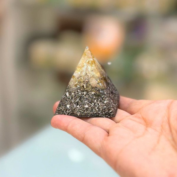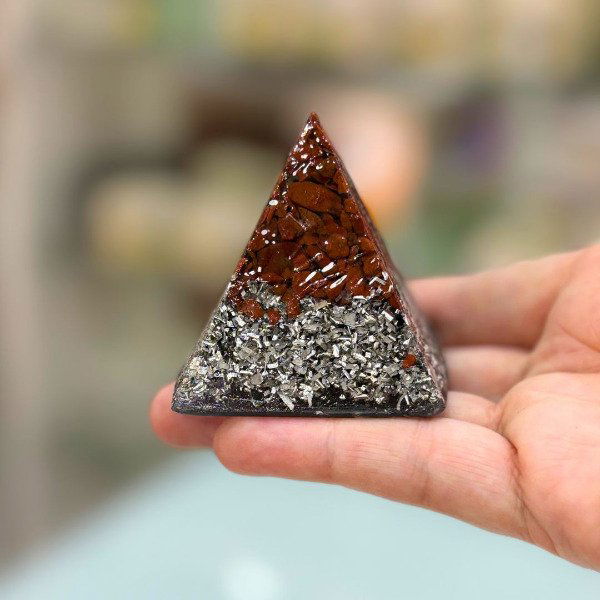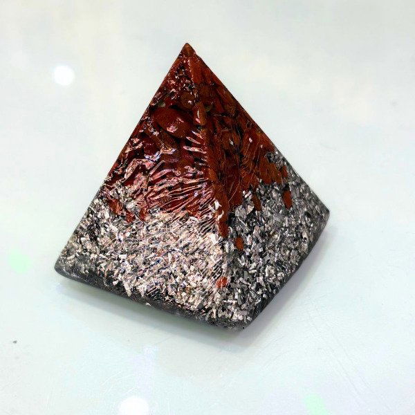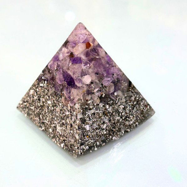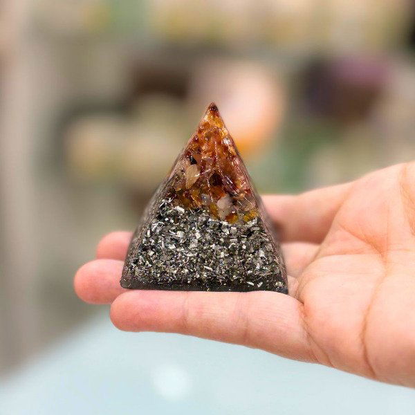 El Mini orgón piramide de 4 lados es una pieza creada para armonizar y equilibrar la energía de personas y espacios. Está elaborado a partir de la combinación de resina, metales y cristales naturales, una estructura característica de los orgones auténticos, reconocida por su capacidad de transmutar la energía densa en energía armonizada.