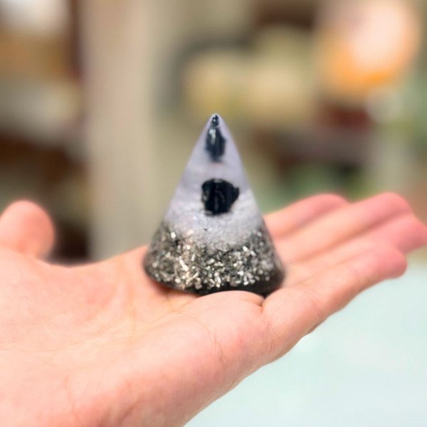 La pirámide cónica chica es una pieza versátil de orgonita diseñada para neutralizar el electrosmog y proteger tu entorno energético de las interferencias diarias. Su forma cónica permite un flujo suave y constante de energía, convirtiéndola en una herramienta ideal para equilibrar espacios personales como escritorios, mesas de luz o zonas cercanas a dispositivos electrónicos.