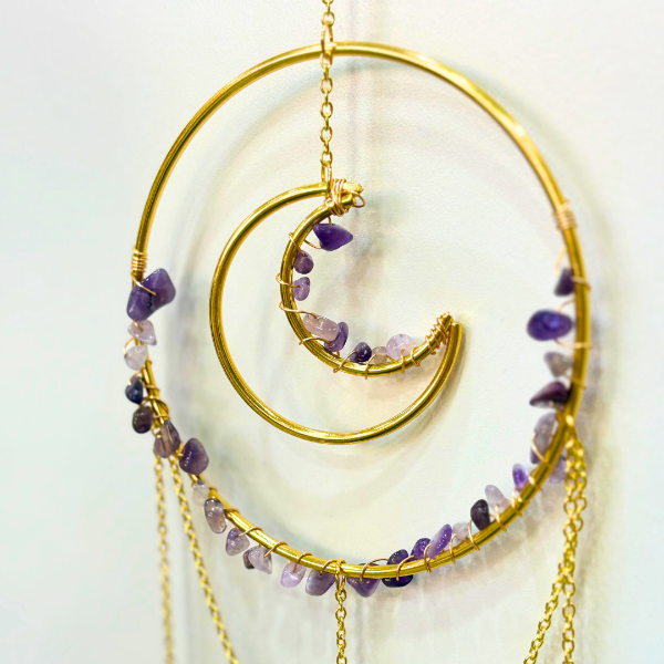 Atrapasol dorado media luna con amatista