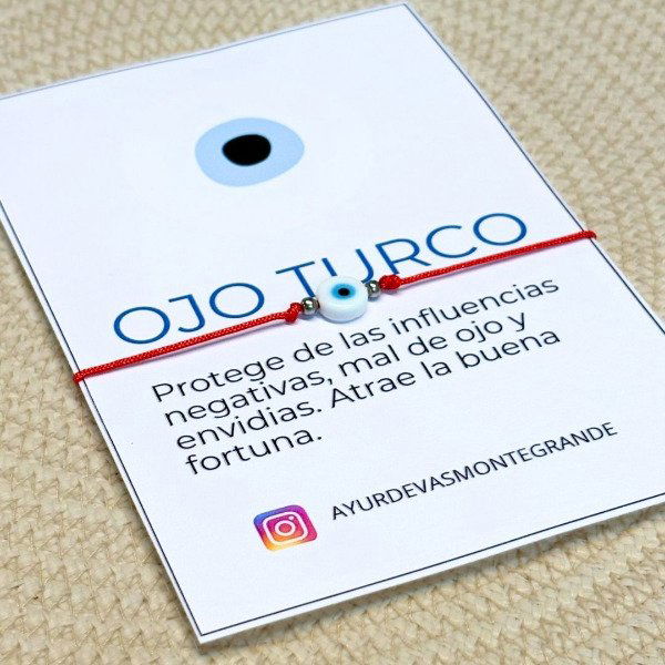 Pulsera con ojo turco celeste, un amuleto tradicional de protección energética que ayuda a repeler energías negativas, envidia y mal de ojo, promoviendo seguridad, equilibrio emocional y buena vibración. Este símbolo ancestral aporta calma, confianza y una sensación de protección constante al llevarlo contigo.