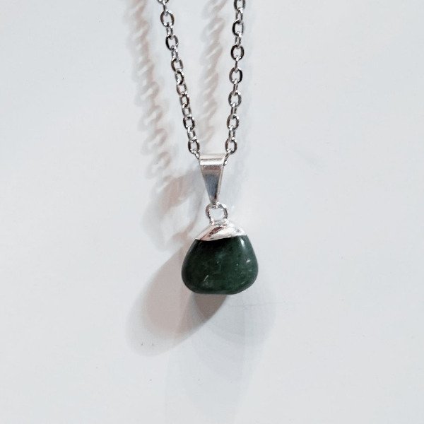 Piedra natural. Cadena acero quirúrgico y tarjeta explicativa con significado. El color o las manchas de la piedra puede no ser igual a la foto.