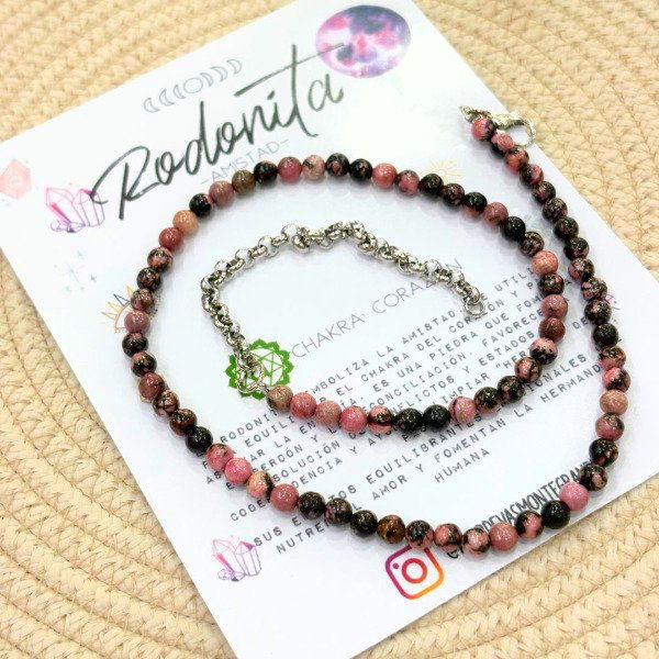 Nuestro collar de Rodonita es lo que estás necesitando! La Rodonita es un cristal vinculado a la sanación emocional, el amor propio y el equilibrio del corazón. La rodonita ayuda a liberar emociones negativas, fomentar la compasión y fortalecer la autoestima, aportando calma y estabilidad afectiva. Ideal para uso diario y para acompañar procesos de bienestar emocional.