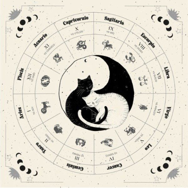Paño para Tarot con diseño de gatitos en blanco y negro