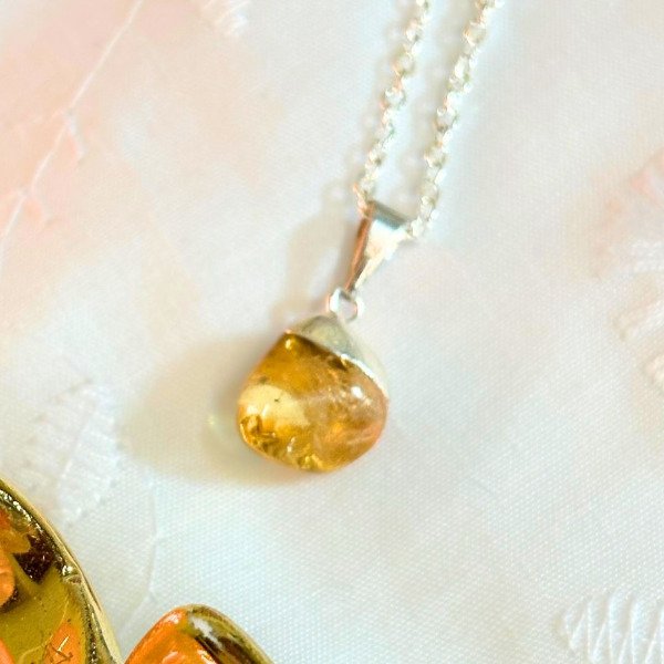 Collar citrino rolado natural, cristal asociado a la abundancia, la prosperidad y la energía positiva. El citrino ayuda a activar la confianza, la motivación y la claridad mental, favoreciendo la manifestación de objetivos y el bienestar emocional. Ideal para llevar encima, usar en rituales de abundancia o armonizar espacios con una vibración alegre y expansiva.