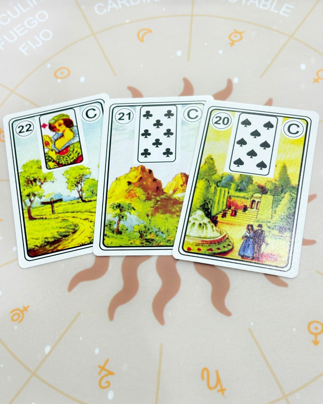 A diferencia del tarot, el Lenormand se interpreta combinando cartas entre sí, revelando historias y respuestas concretas sobre distintos aspectos de la vida.