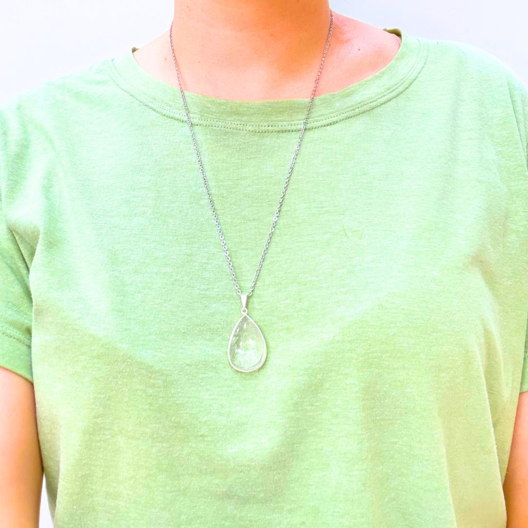 Collar en gota de cuarzo cristal natural. El cuarzo cristal elimina vibraciones negativas y refuerza nuestro campo energético. Ideal para meditar, estudiar y conectar con el mundo espiritual.